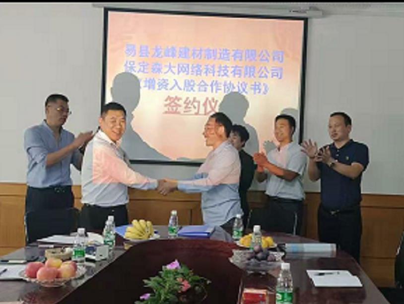 2019年926日,易縣龍峰建材制造有限公司攜手保定森大網絡科技有限公司關于《增資入股合作協議書》簽約儀式在龍山石材會議室圓滿舉行,雙方共同簽署了增資入股合作協議書,本次合作有利于雙方發揮各自優勢,資源共享、優勢互補、互利共贏。