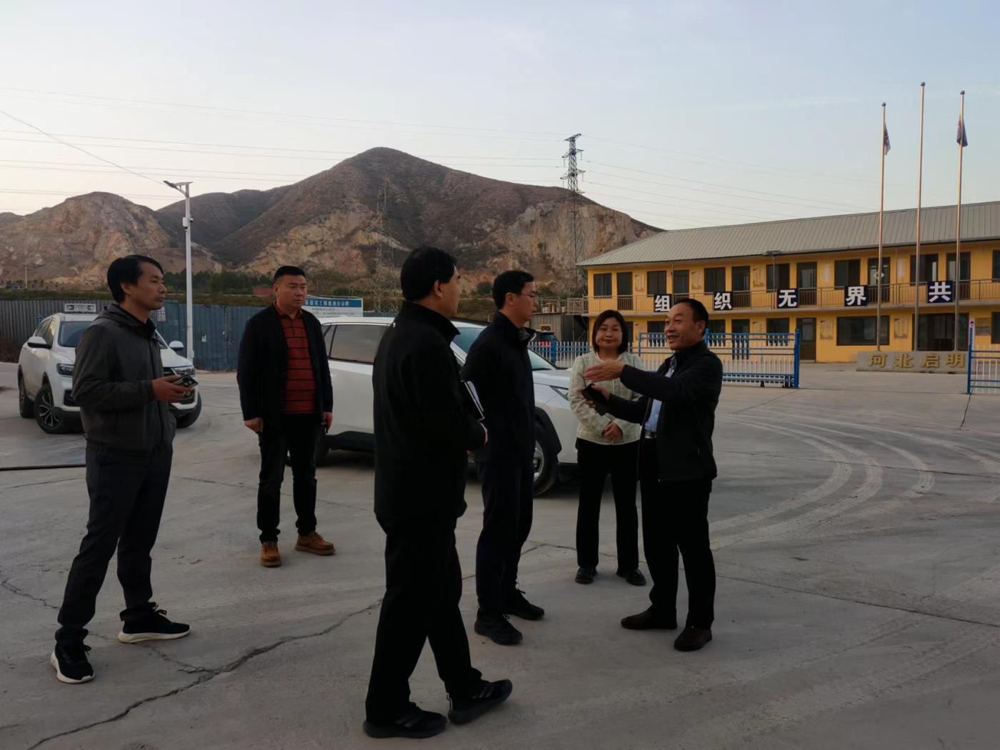 2023年11月3日下午,縣政府安全生產巡查組一行到龍山石材開展安全生產巡查工作。易縣經濟開發區曹主任帶頭,高村鎮盧鎮長等相關領導陪同。龍山石材總經理耿立新熱情接待并就龍山石材及龍峰綠色園區的安全生產情況進行了詳細介紹。